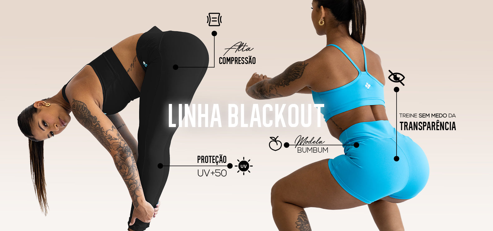 Além disso, temos a Tecnologia Blackout, que garante segurança em qualquer movimento, para você se sentir confiante e confortável. Com nossas leggings, shorts e tops, você pode treinar sem se preocupar com nada, especialmente com transparência indesejada.
