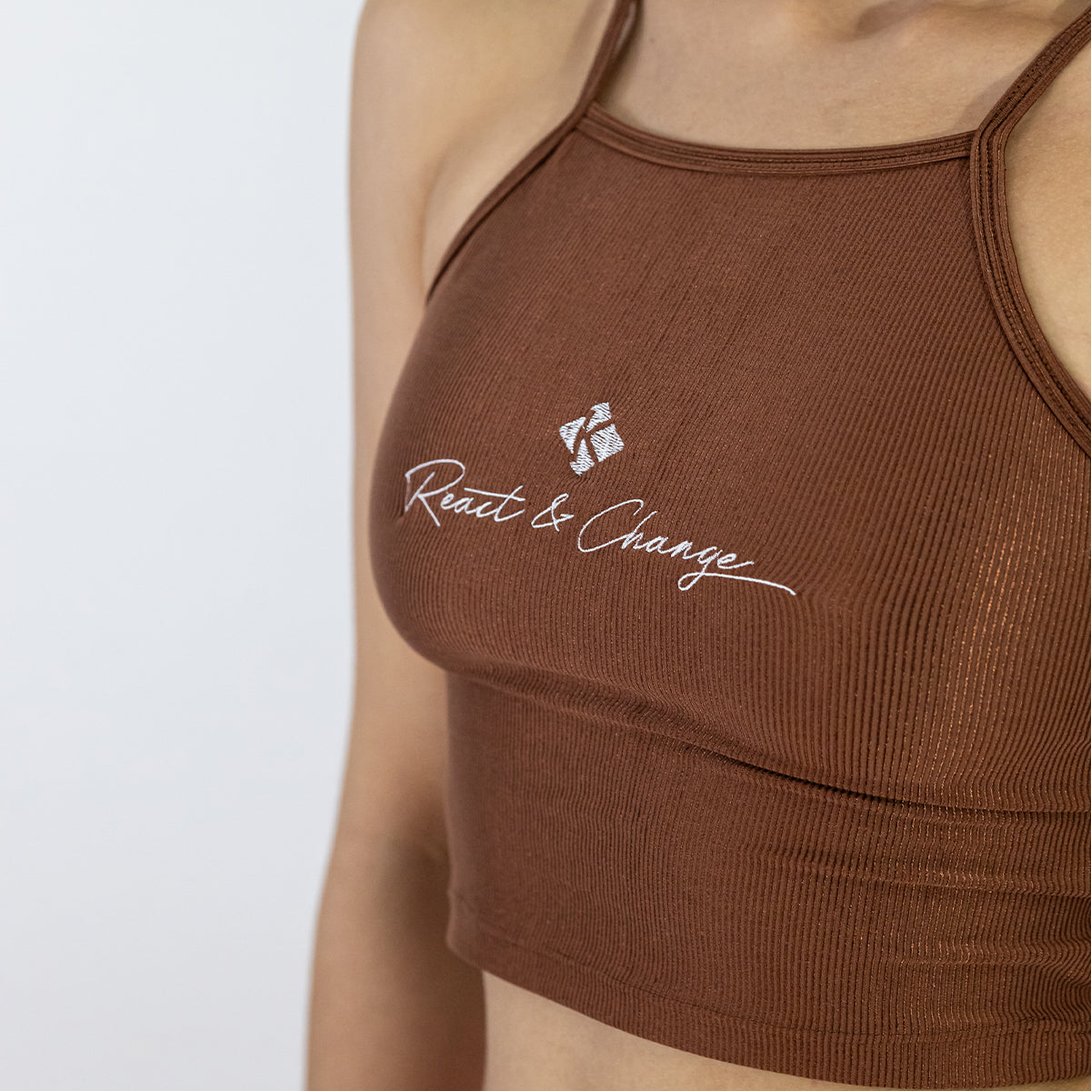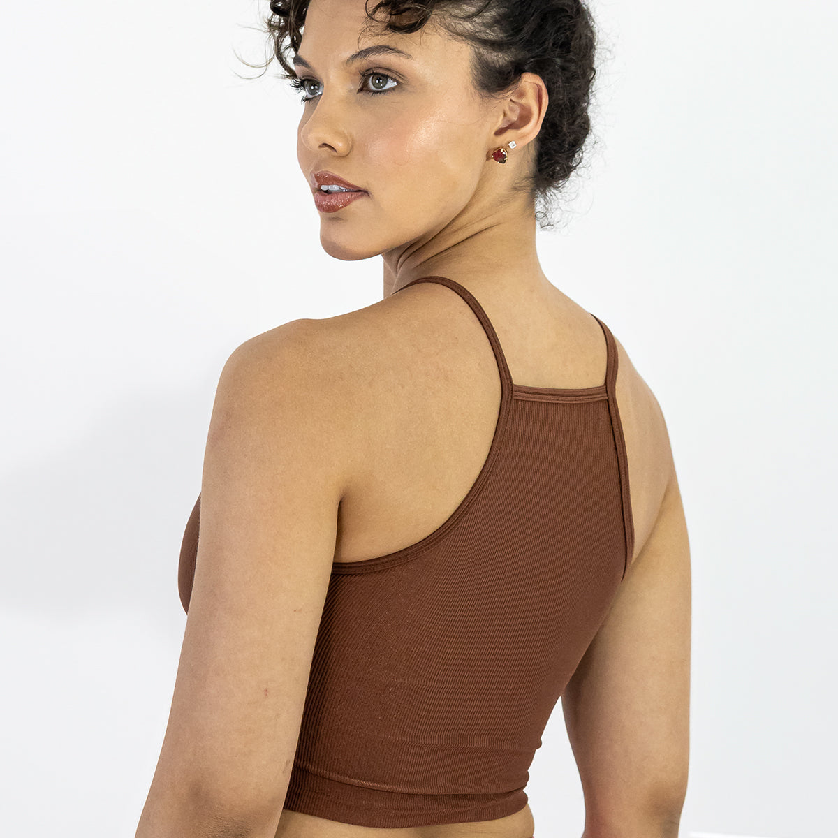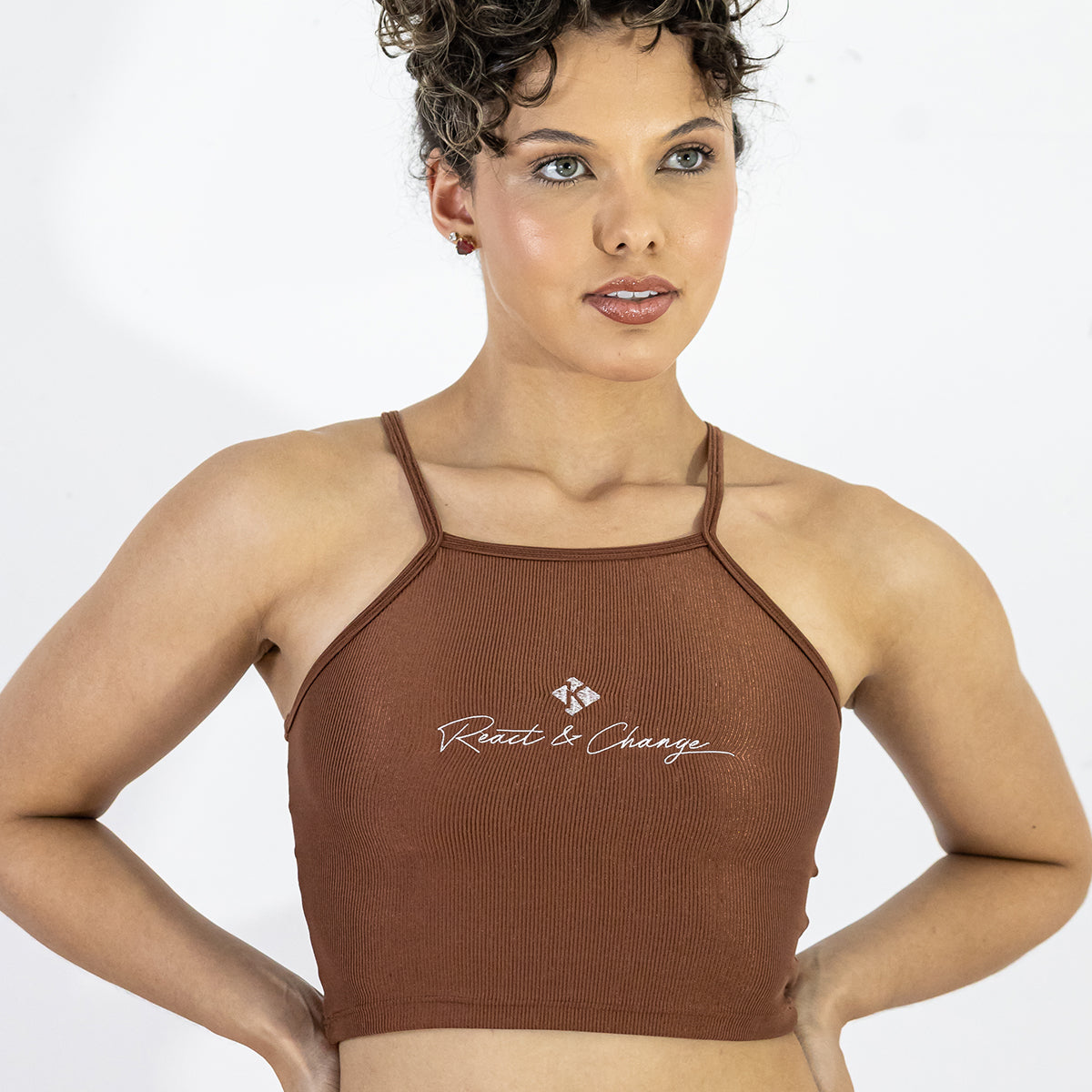 O Cropped Canelado Marrom da Kínitro é sinônimo de elegância natural.