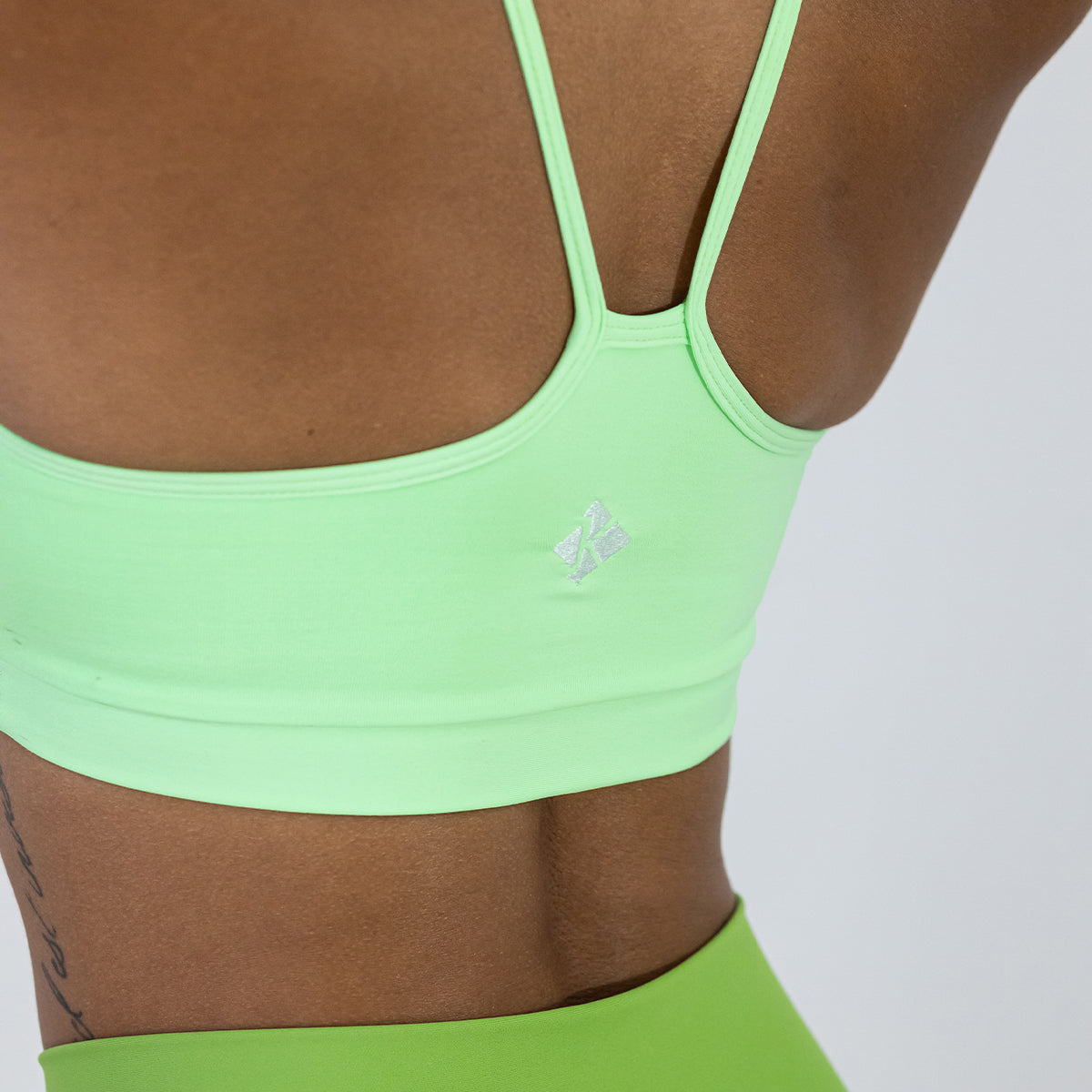 O Top Alcinha Verde Paradise da Kínitro é a combinação perfeita entre frescor e performance. Sua estrutura delicada, com costura dupla de poliamida e elastano, proporciona toque suave e garante privacidade nos movimentos.